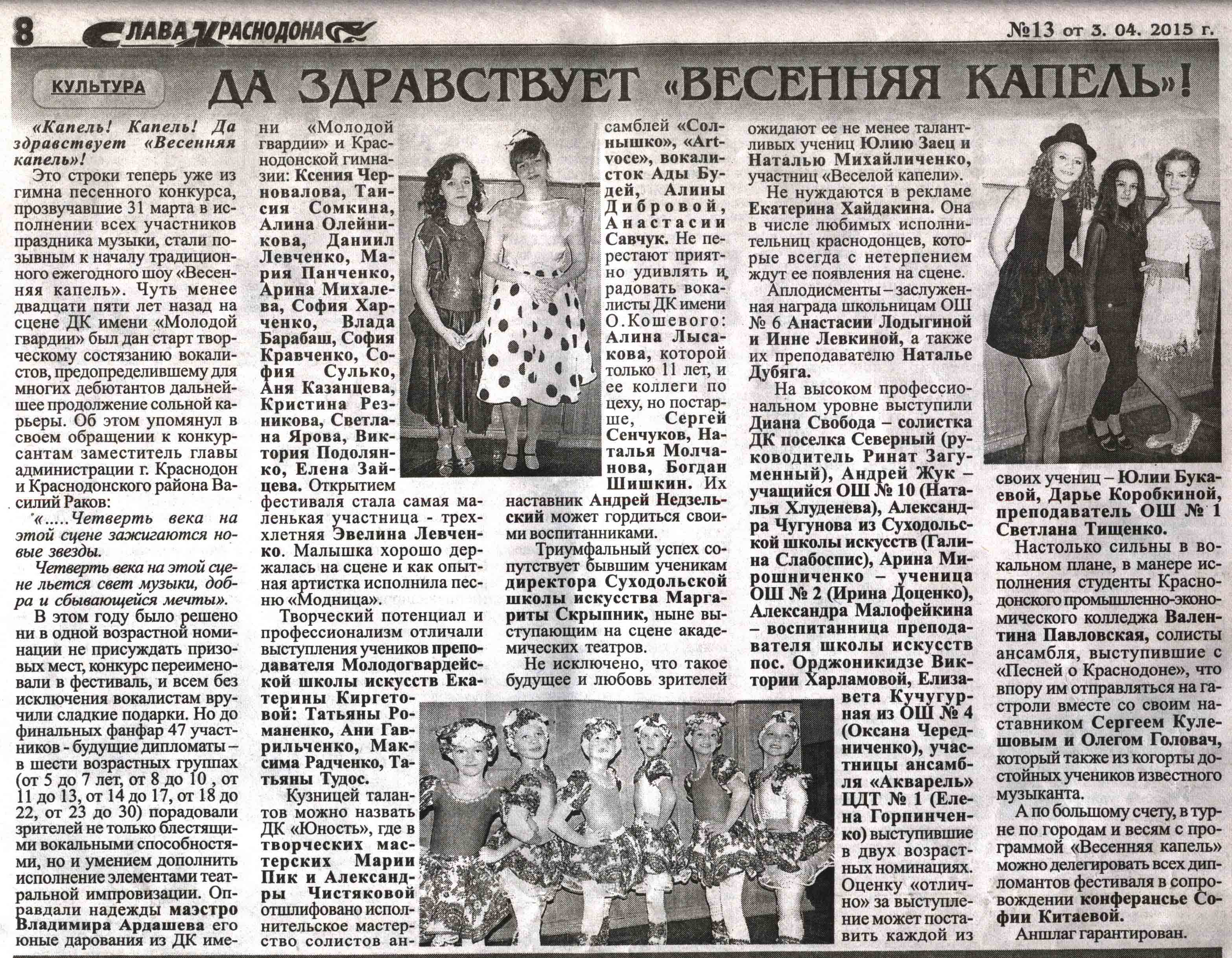 Публикации в прессе